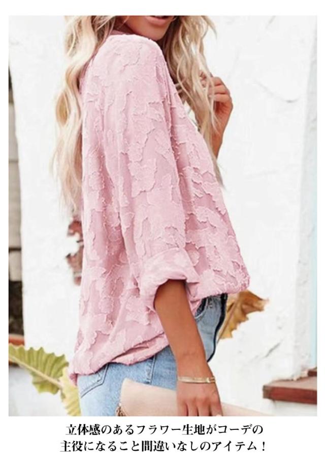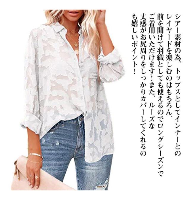 | 甘くなりすぎず大人っぽく着こなせるシアーシャツが新登場! 立体感のあるフラワー生地がコーデの主役になること間違いなしのアイテム! シアー素材の為、トップスとしてインナーとのレイヤードを楽しむのはもちろん、前を開けて羽織としても使えるのでロングシーズンでご着用いただけます!また、ルーズな丈感がお尻周りをしっかりカバーしてくれるのも嬉しいポイント! スカート合わせで可愛らしく、パンツ合わせでカジュアルにとお好みの雰囲気に合わせてコーデを楽しんでいただけます。 カラーは使いやすい7色からお選びください。 | |