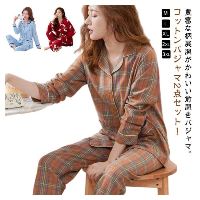 コットン 上下セット かわいい 上下 前開き パジャマ パジャマ 長袖 冬 秋 春 レディース セット ルームウェア パジャマ 前開きパジャマ コットンパジャマ 前開きパジャマ 入院 ナイトウェア 部屋着 寝間着 寝巻き セットアップ おしゃれ かわいい 春 夏 秋