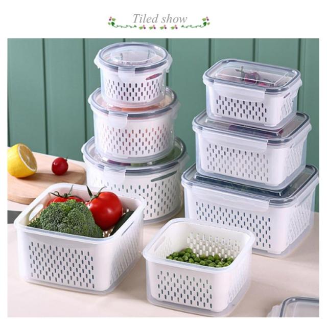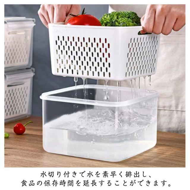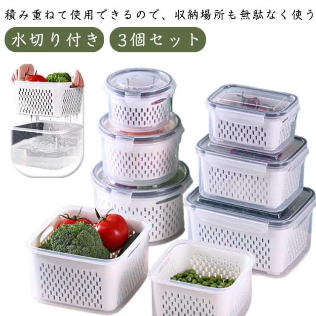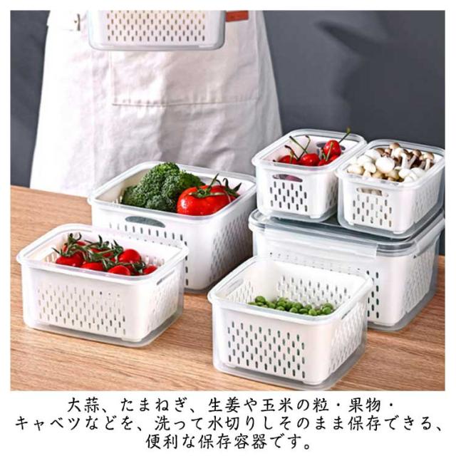 野菜 野菜 フタ付き ざる 保存容器 フルーツ 野菜用保存かご 密封キーパー 収納ボックス 保存容器 3個セット 食品 果物 二層 保存容器 ザル 冷蔵庫 排水 水切り ニンニク 大蒜 玉ねぎ 生姜 唐辛子 玉米の粒 収納ケース 密封