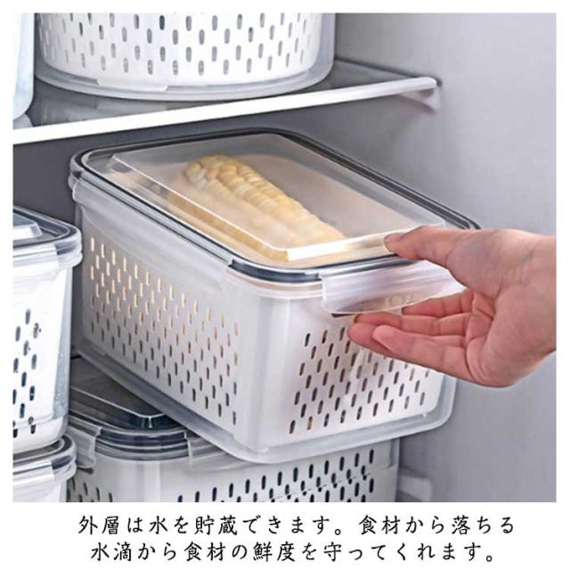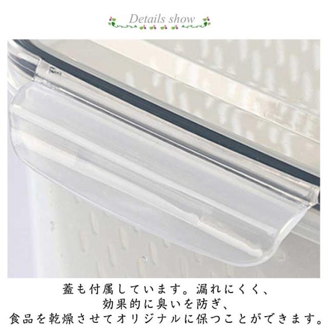| 【蓋付き 水切り付き 密閉ボックス 3個セット】 【積み重ねて使用できるので、収納場所も無駄なく使う】 大蒜、たまねぎ、生姜や玉米の粒・果物・キャベツなどを、洗って水切りしそのまま保存できる、便利な保存容器です。 水切り付きで水を素早く排出し、食品の保存時間を延長することができます。 外層は水を貯蔵できます。食材から落ちる水滴から食材の鮮度を守ってくれます。 蓋も付属しています。漏れにくく、効果的に臭いを防ぎ、食品を乾燥させてオリジナルに保つことができます。 透明度が高い容器で中身がとてもわかりやすいです。 | |