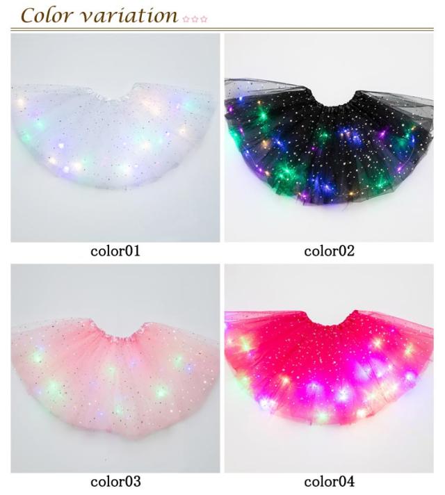 コスプレ LEDライト付き チュールスカート キッズ チュチュ お祭り 夏 光る 夏祭り 迷子防止 光る 衣装 パーティー スカート 花火大会 パニエ 子供 女の子 ドレスアップ クリスマス 仮装 イベント 発表会 ダンス お揃い プレゼント