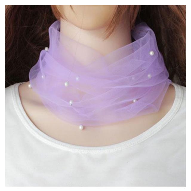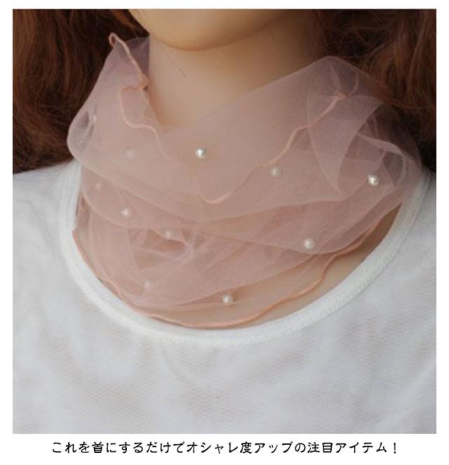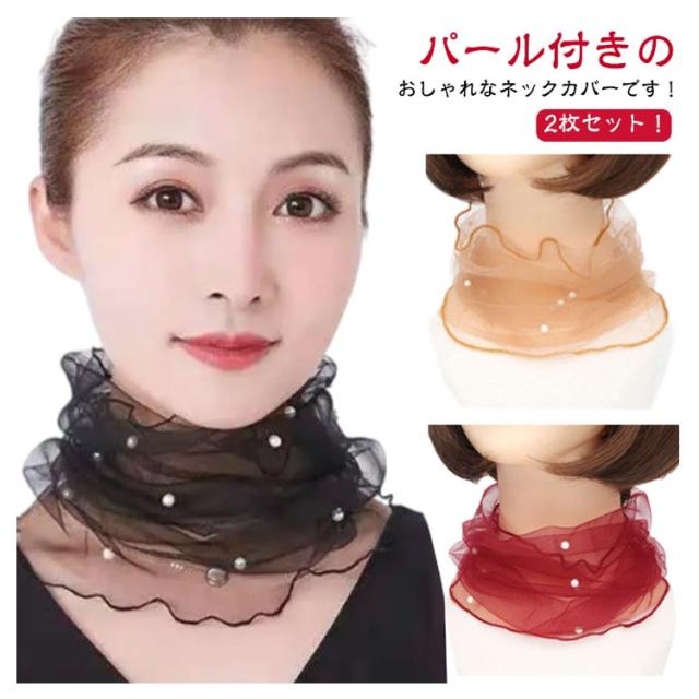 首 パール チュール おしゃれ スカーフ ネックカバー シワ隠し 紫外線対策 日焼け防止 2枚セット ネックウォーマー レディース UVカット 首巻き 傷隠し 日焼け対策 チュールネット薄手 春夏 夏 UVケア きれいめ