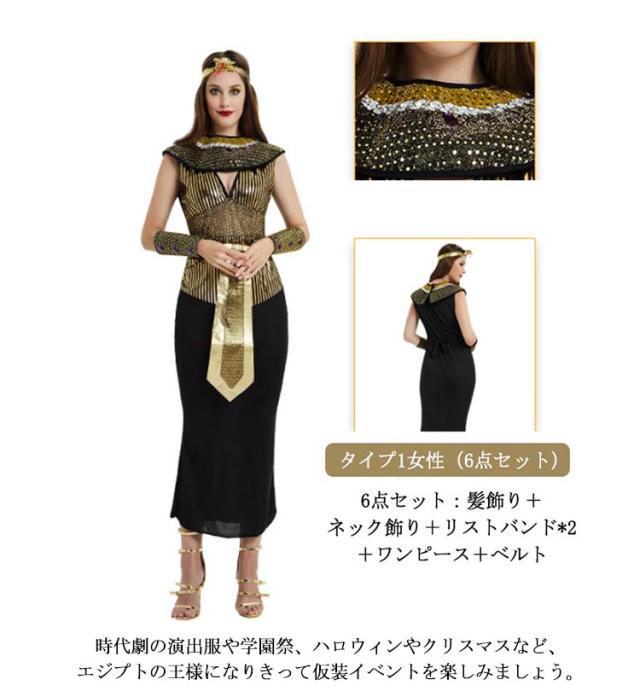 クレオパトラ エジプト コスチューム エジプト 女王 コスプレ衣装 コスプレ 女王 王様 衣装 王 6点セット/7点セット 仮面舞踏会 大人用 古代エジプト祭司服 ファラオ ハロウィン 仮装 コスチューム 舞台 余興