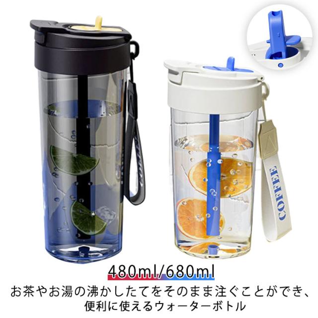 直飲み水筒 クリアボトル ウォーターボトル 茶こし付き 480ml 680ml 2容量選べる 耐冷耐熱 ウォーターボトル 大容量 通学 目盛り付き 洗いやすい 蓋つき ワンタッチオープン ボトル 通勤 オフィス 高い密封性 軽量 漏れ防止 持ち運び ポータブル 直飲み 水分補給 男女兼用