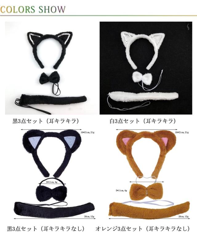 衣装 3点セット リボン にゃんこ ねこみみ 猫耳カチューシャ キャット 白 コスプレ 動物 ハロウィン コスチューム キッズ 尻尾 バニーガール アニマル 黒 3点セット リボン首輪 ヘッドアクセサリー 猫しっぽ ロングしっぽ 子供 大人 なりきり コスプレ パーティー