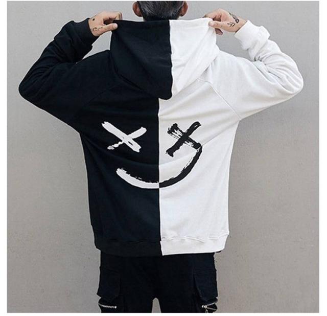 舞台 落書きプリント レディース フード付きバイカラーパーカー ダンス服 ダンスパーカー ストリートファッション メンズ 個性派 男女兼用 ヒップホップ パーカー ダンス ダンス 演出服 ダンス コスチューム 文化祭 韓国ファッション バイカラーパーカー 無地