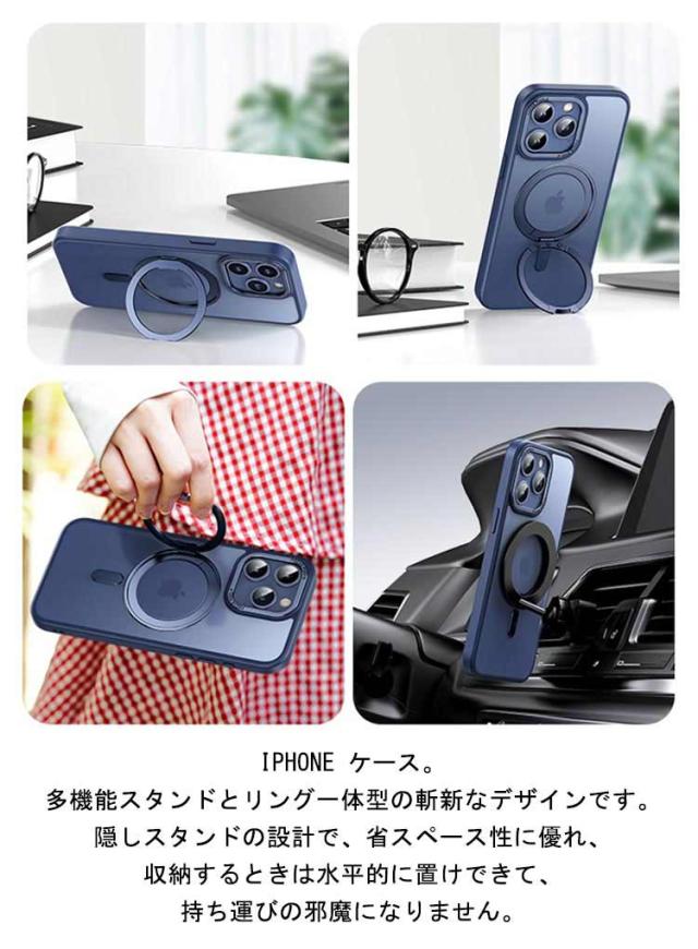 | iPhone ケース。多機能スタンドとリング一体型の斬新なデザインです。隠しスタンドの設計で、省スペース性に優れ、収納するときは水平的に置けできて、持ち運びの邪魔になりません。 MagSafe対応!超世代的な隠しスタンドと強力なマグネットリングの強力な結合により、高い吸着力でガッチリと固定しながら充電ができます。 表面はマットな質感になっており、滑らかな肌触りで指紋が付きにくい。 男女問わずお使い頂けるお洒落なデザイン。 | |