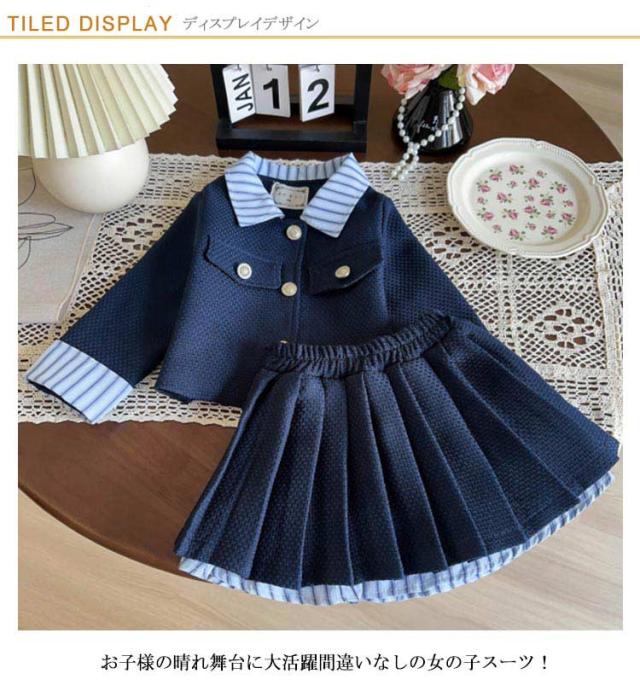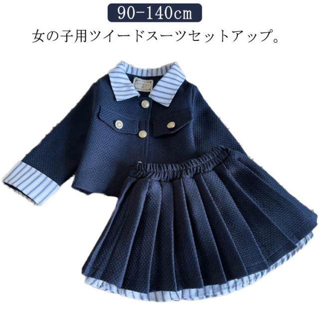 小学生 結婚式 スカートスーツ ツイードスーツ キッズ 幼稚園 卒園式 ツイードジャケット 女の子 お宮参り フォーマル ドレス スーツ 入学式 入園式 七五三 子供服 七五三 上下セット 発表会 90 100 110 120 130