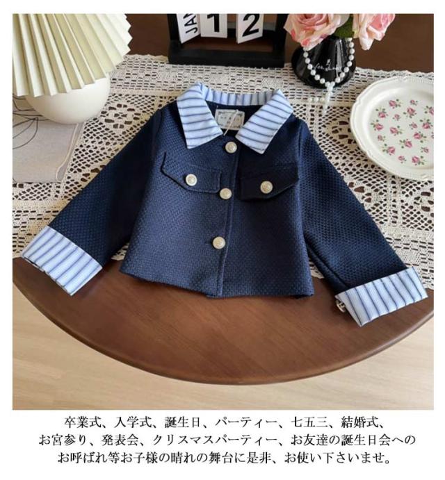 | 女の子用ツイードスーツセットアップ。 お子様の晴れ舞台に大活躍間違いなしの女の子スーツ! 卒業式、入学式、誕生日、パーティー、七五三、結婚式、お宮参り、発表会、クリスマスパーティー、お友達の誕生日会へのお呼ばれ等お子様の晴れの舞台に是非、お使い下さいませ。 大人顔負けのスタイリッシュなデザインでかっこよくキメて。 | |