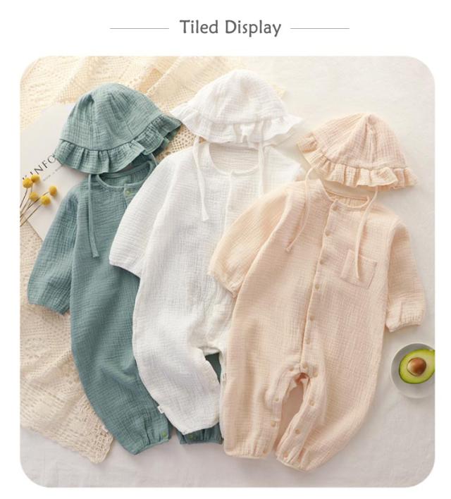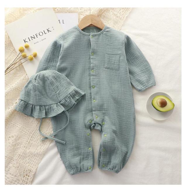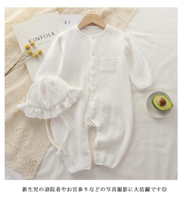 ロンパース 前開き おしゃれ オールインワン 帽子付き ベビー服 薄手 男の子 ダブルガーゼ 秋 カバーオール ベビー服 新生児 出産祝い 春 女の子 かわいい 長袖 夏用 記念撮影 赤ちゃん 出産準備 お誕生日 プレゼント お誕生日 幼稚園 コットン 66cm 73cm 80cm