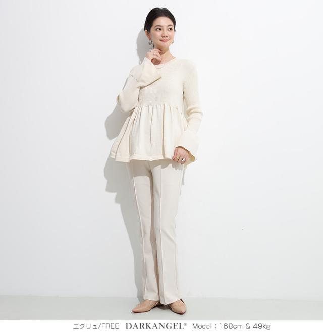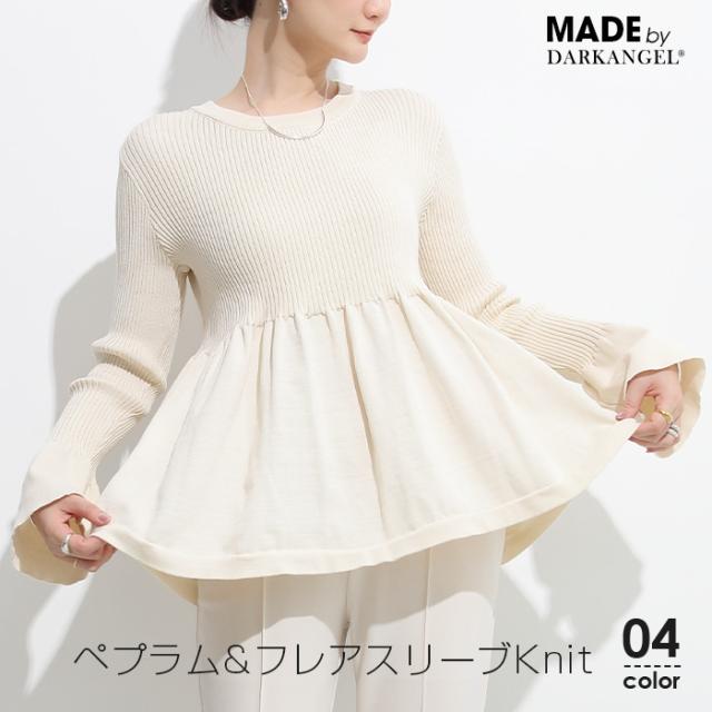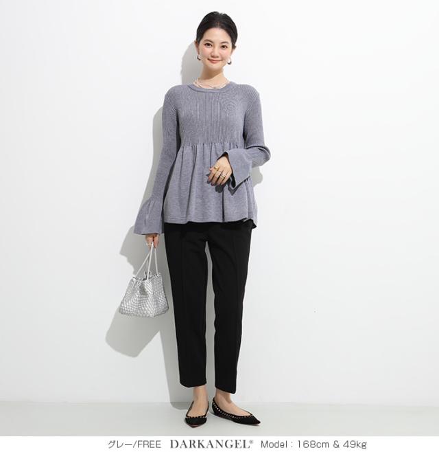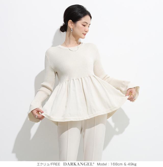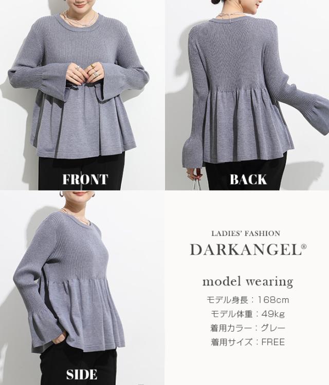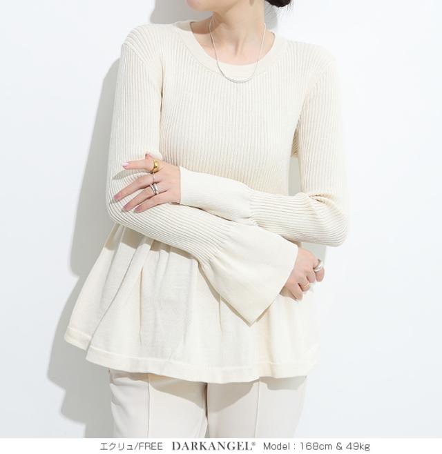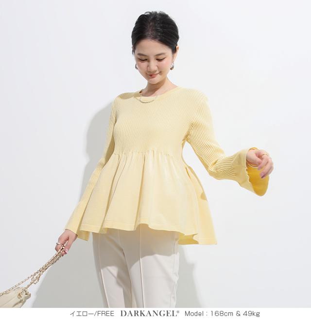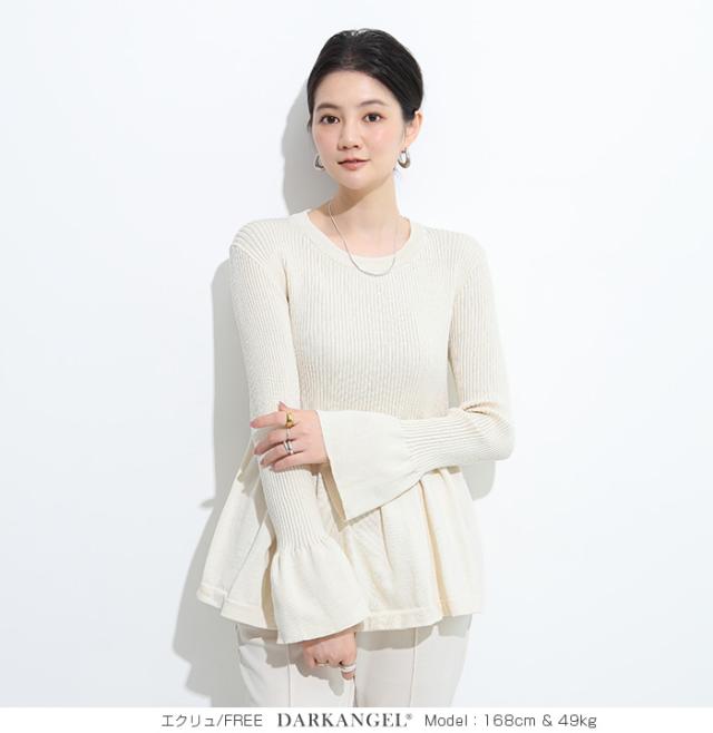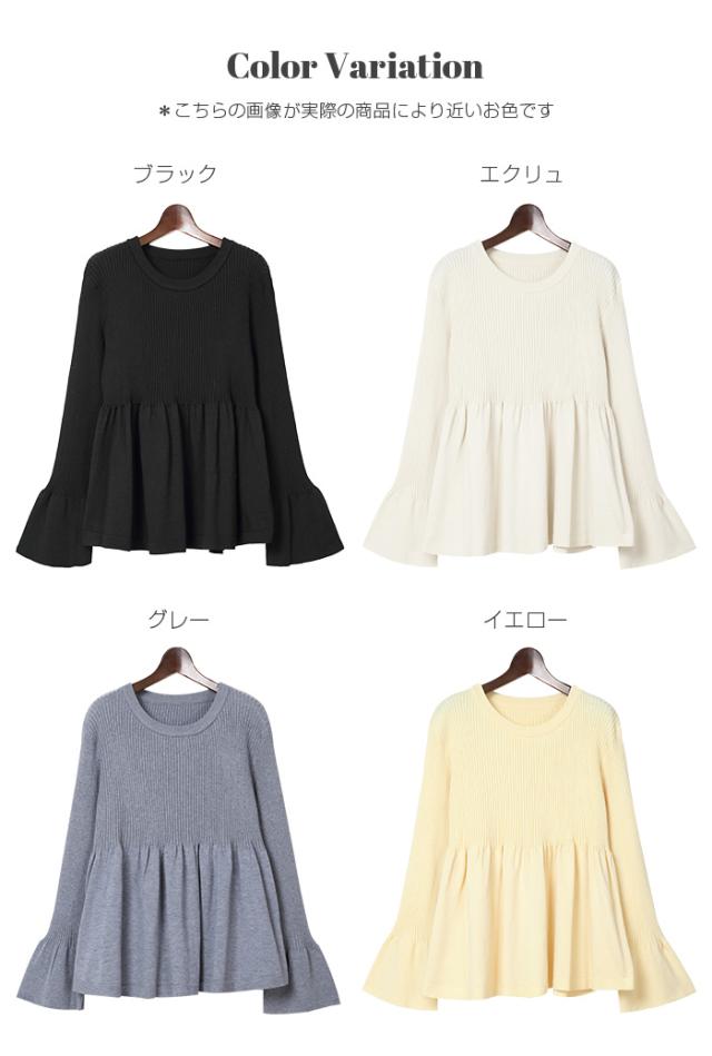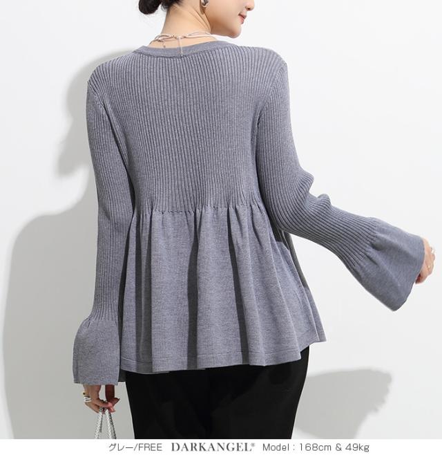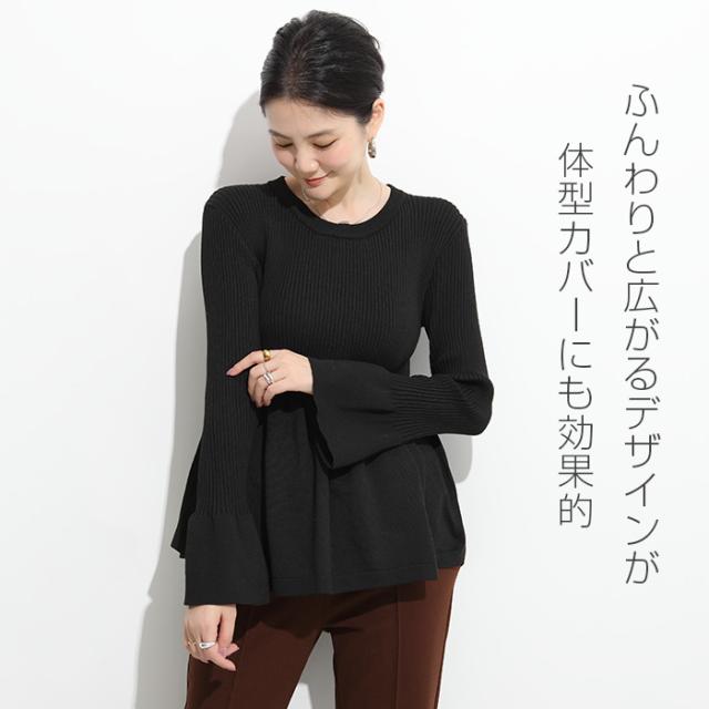 全品40%OFFクーポン!ペプラムニット フレアスリーブニット 長袖 秋 新作 長袖ニットトップス レディースニットトップス おしゃれペプラムセーター リブ編みニット体型カバーセーター フレア袖セーター【ペプラムニット】送料無料 秋新作 ●即納● trend_nit