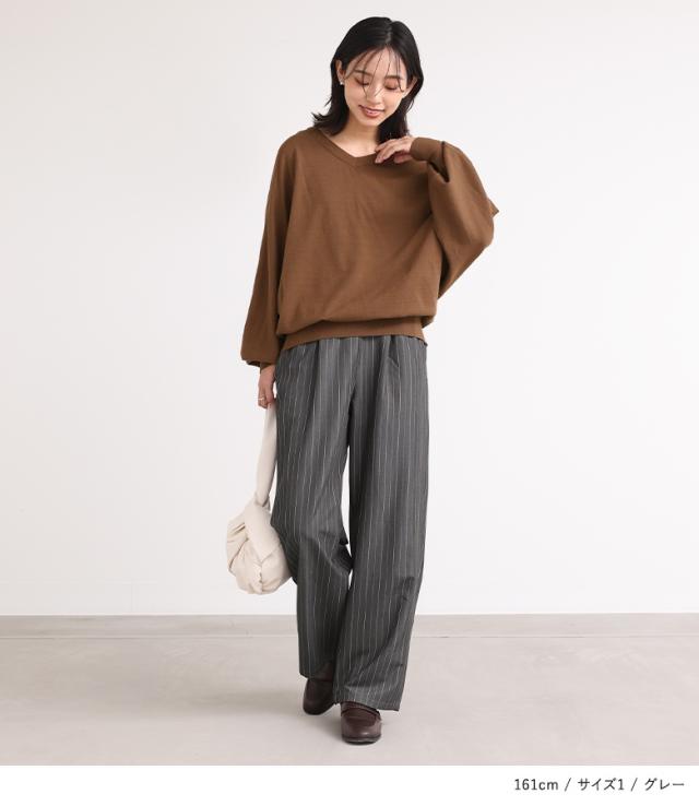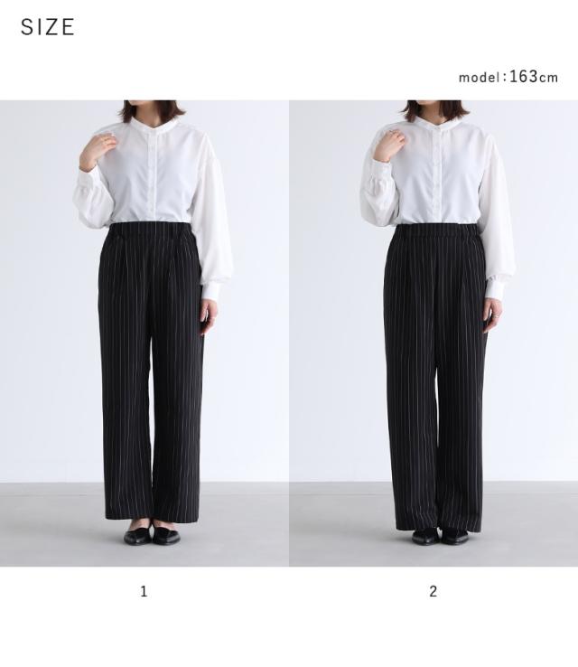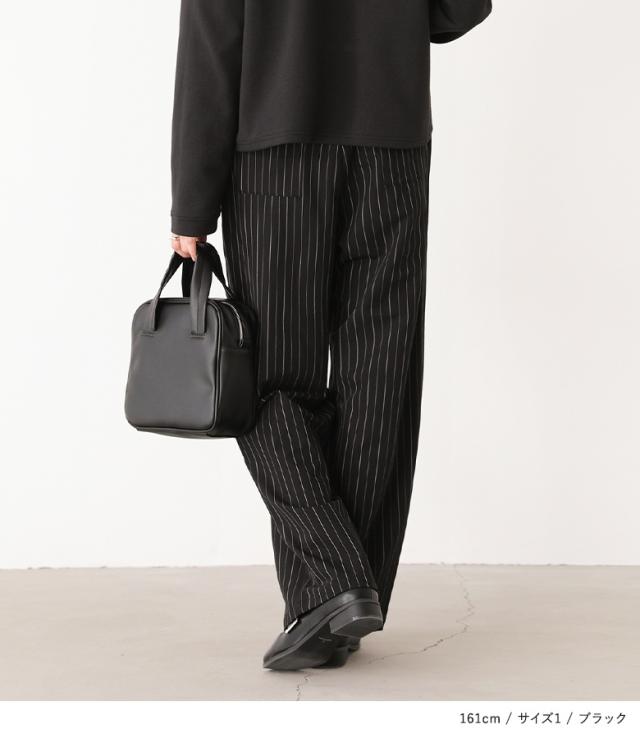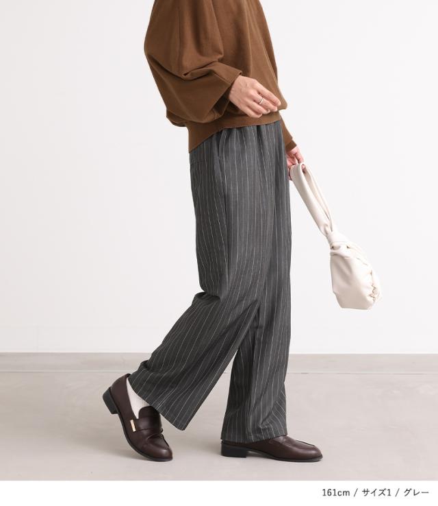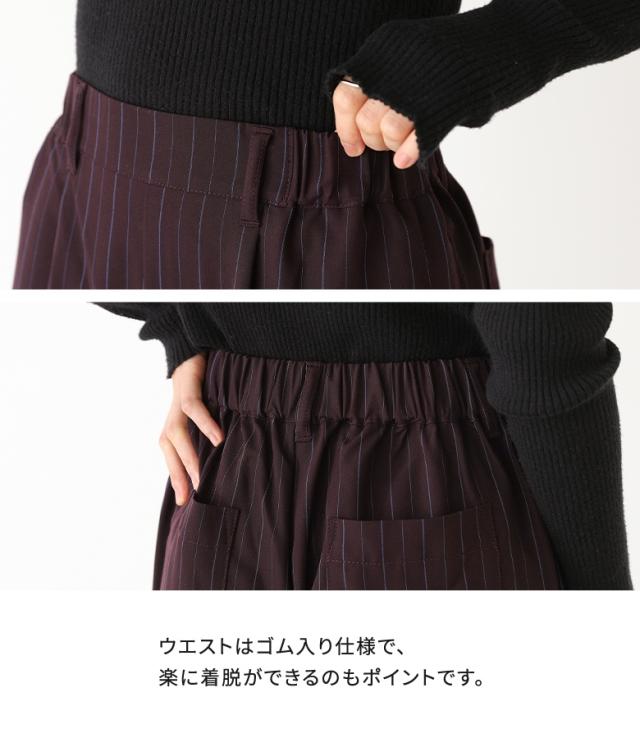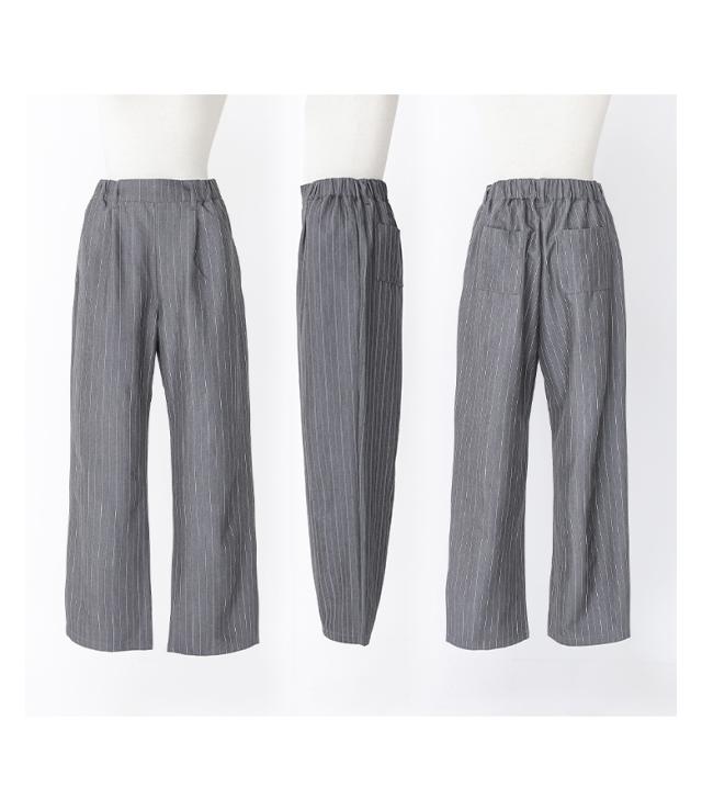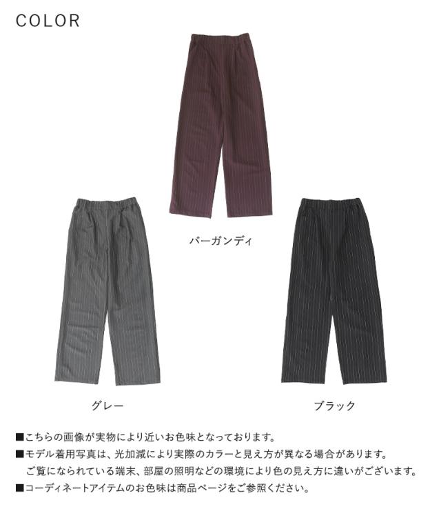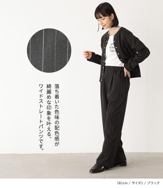 『ピンストライプストレートパンツ』※メール便可※【10】[ワイドストレートパンツ レディース ボトムス ピンストライプ ストレートパンツ ワイドパンツ ロングパンツ ウエストゴム 配色 ポケット]