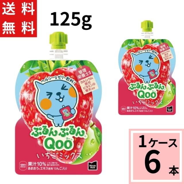 ミニッツメイドぷるんぷるんQoo いちごミックス 125g パウチ 送料無料 合計 6 本(6本×1ケース)クー Qoo ゼリー ぶどう ブドウ 4902102156431