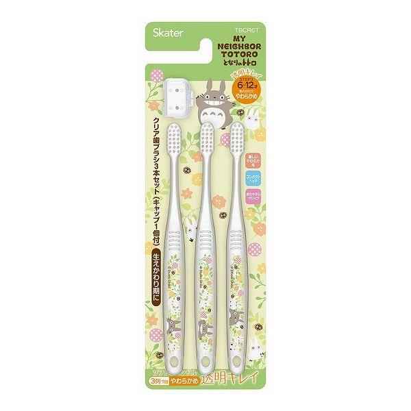 スケーター 小学生用歯ブラシ クリア やわらかめ 3本セット 6~12才 トトロ プランツ