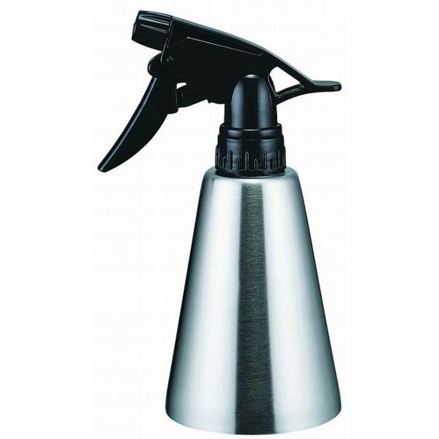 円錐型のスタイリッシュな霧吹き。本体はステンレス製です。ブラック×シルバーのカラーリングがクール。さりげなく生活に馴染んでくれるデザインです。観葉植物のお手入れや、ベッドリネン、アイロンなどに。