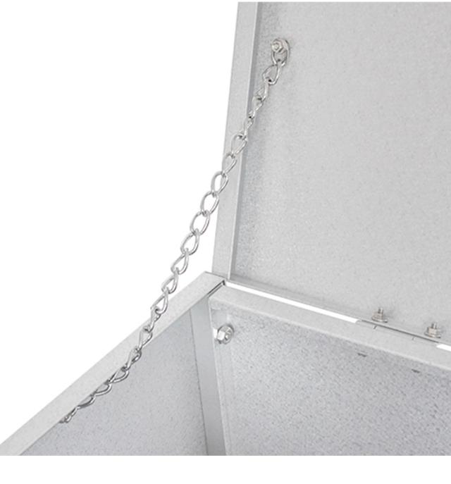 フタの開き具合を調整できるチェーン、設置場所に合わせて調整できるアジャスター付き。