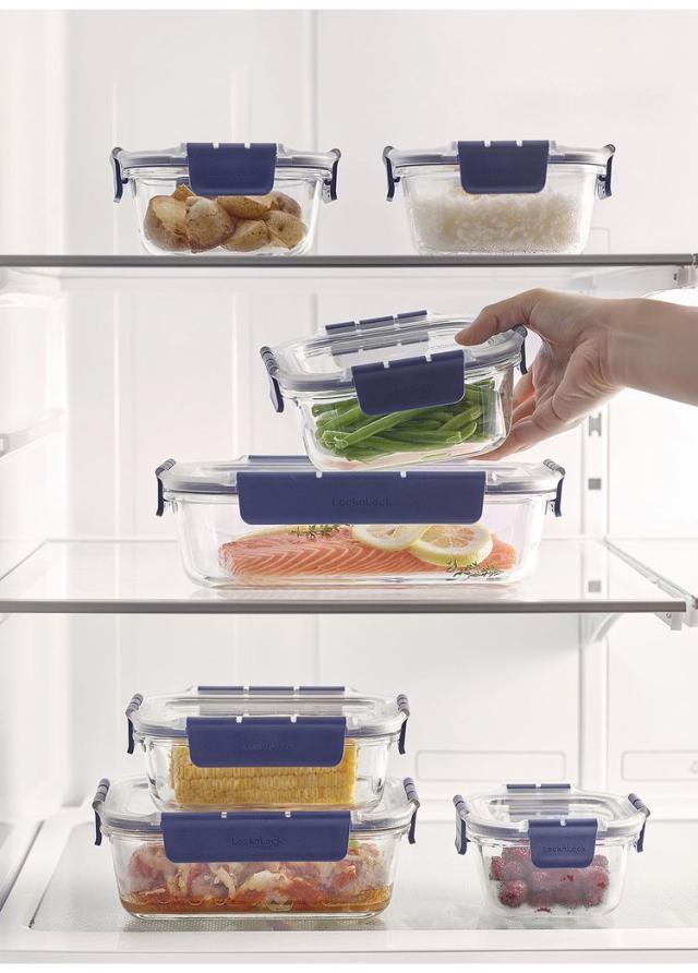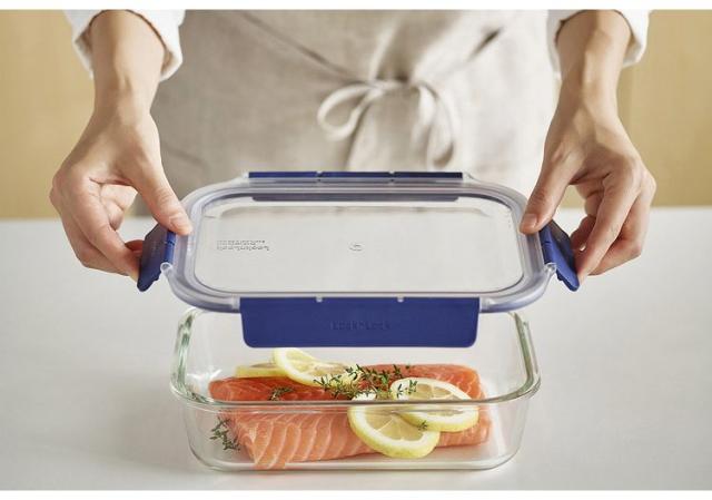 本体/耐熱ガラス、フタ/コポリエステル樹脂 ・ポリプロピレン、パッキン/シリコーン本体(耐熱温度400℃、耐熱温度差120℃、耐冷温度-20℃)、フタ(耐熱温度110℃、耐冷温度-20℃)、パッキン(耐熱温度200℃、耐冷温度-20℃)フタを外してオーブン調理にも使える耐熱ガラス容器。オーブン・電子レンジでの調理から冷凍室での保存まで色々使えて便利。BPAフリーの為赤ちゃんも安心。液もれ・においもれしにくい安心の10点ロックでしっかり密閉。積み重ねても揺れにくい安心設計。