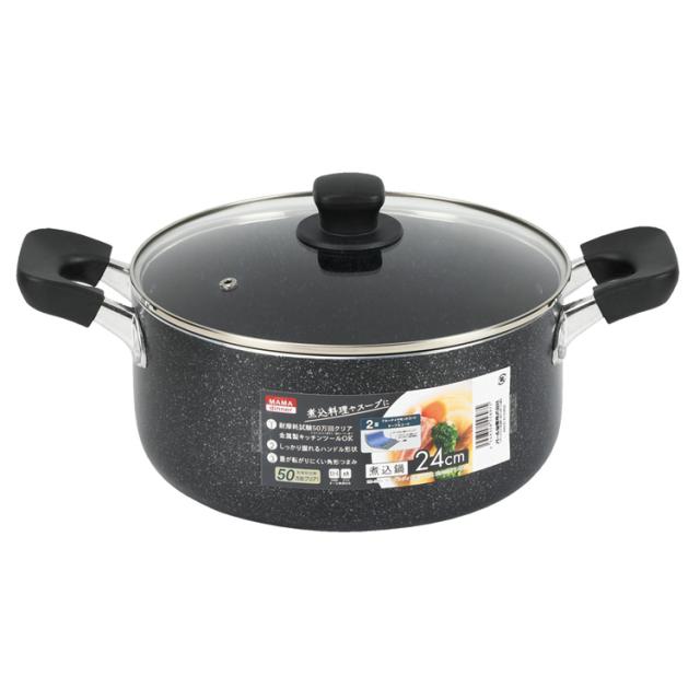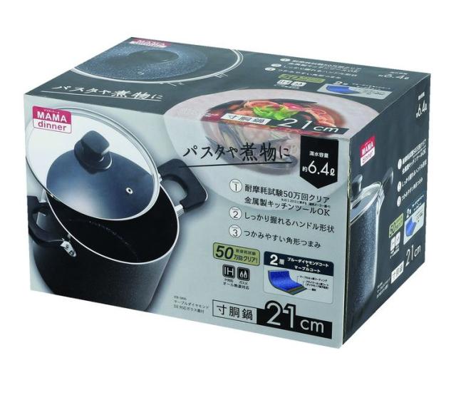 ママディナーα マーブルダイヤモンド IH 対応 ガラス蓋付寸胴鍋 料理 クッキング 21cm HB-5895【送料無料】