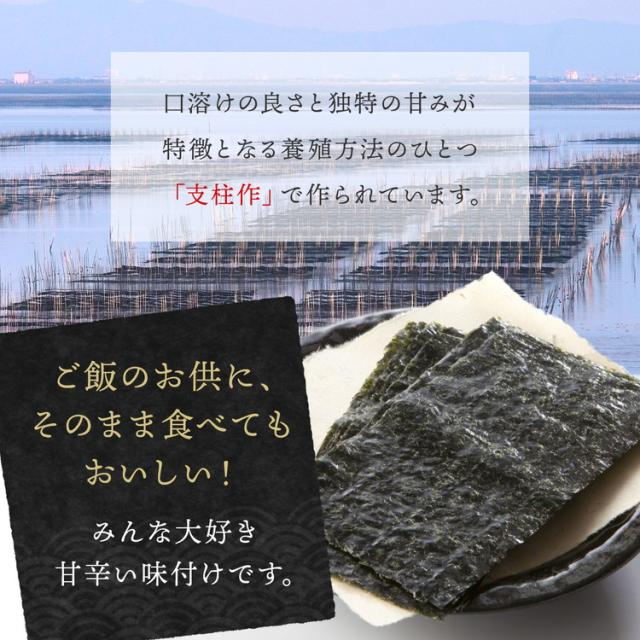 【名称:焼海苔・原材料名:干のり(国産)・内容量:14袋詰め(8切5枚)・アレルゲン:なし(本商品の原材料は、えび、かにの生息域で採取しています)】【名称:味付け海苔・原材料名:干のり(国産)、砂糖、醤油、みりん、食塩、たん白加水分解物(大豆を含む)、デキストリン、えび、昆布、鰹削り節、魚醤、椎茸、ポークエキス(小麦含む)、酵母エキス/調味料(アミノ酸等)、香辛料・内容量:14袋詰め(8切5枚)・アレルゲン:小麦・えび・大豆・豚肉(本商品で使用している海苔は、えび、かにの生息域で採取しています)】