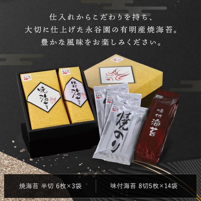 焼海苔半切6枚×3袋・味付海苔8切5枚×14袋