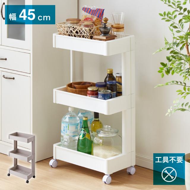 キッチンワゴン キャスター付き 3段 スマート ワゴン Fit W2502色 組立式 隙間収納 日本製 すき間 収納ストッカー キッチン 食品 ストック 食料ストック 不動技研【送料無料】