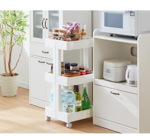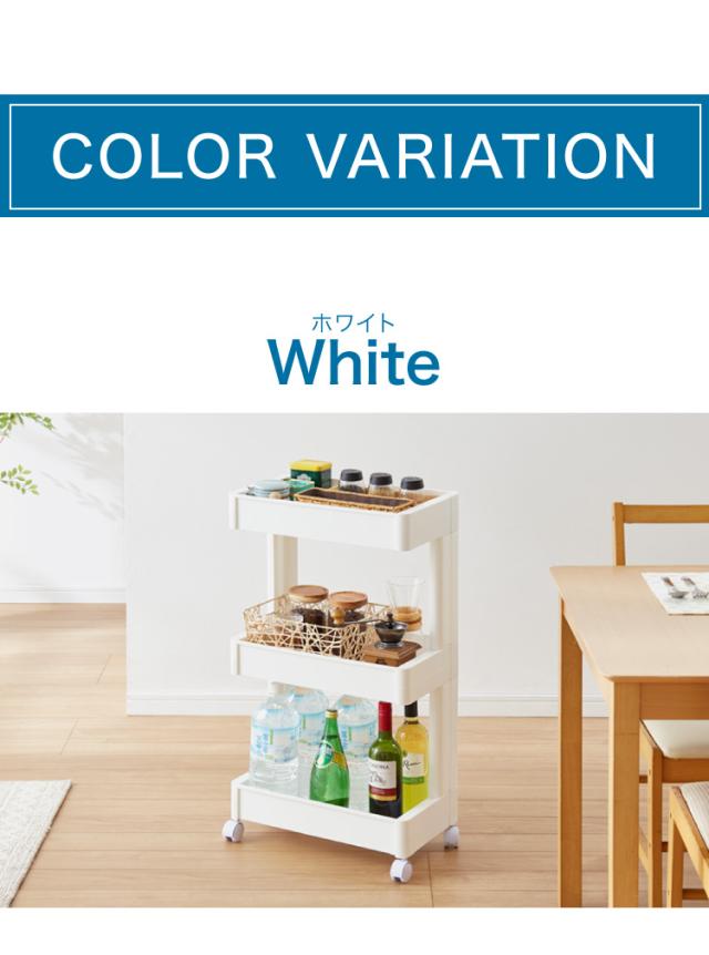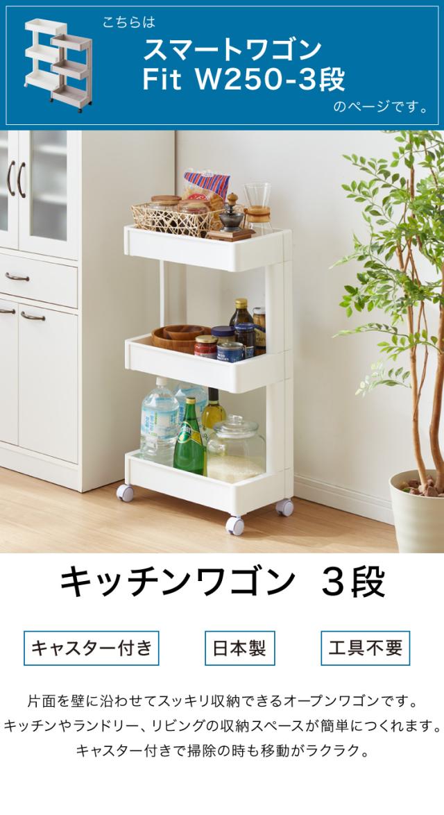 ワゴン、キャスター付き、スマートワゴンFit、W250-3段、F2593、フィット、キッチン、収納、スリム、ラック、サニタリー、ランドリー、リビング、ホワイト、白、棚、ストッカー