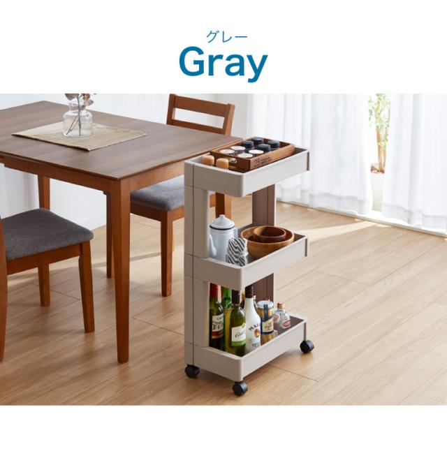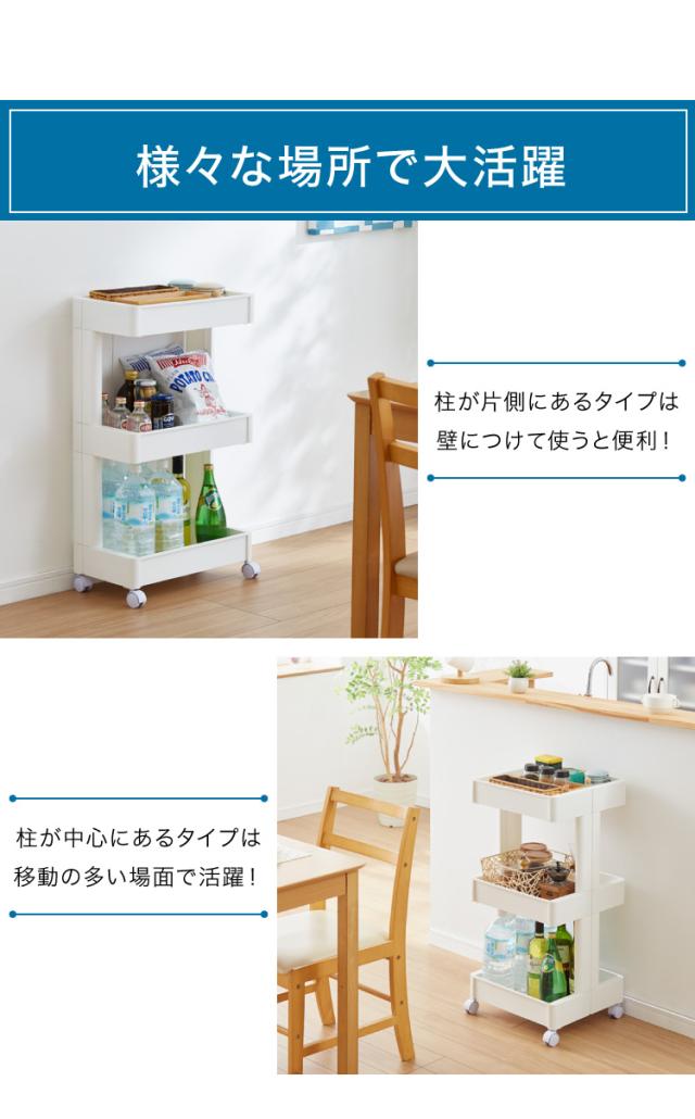 片面を壁に沿わせてスッキリ収納できるオープンワゴン3段タイプです。