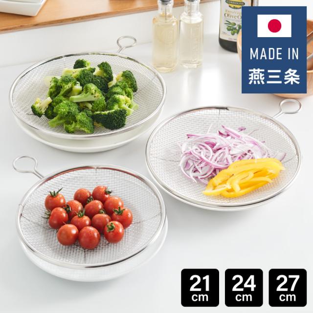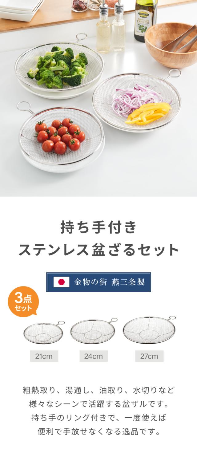 日本製 燕三条 取っ手付き ステンレス盆ざる 21cm&24cm&27cm 3点セット 足付き 食洗機対応 盆ざる 盆ザル 平ざる 平ザル リング付き 薄型 壁掛け 重ね 吊るす 収納 湯切り 水切り【送料無料】