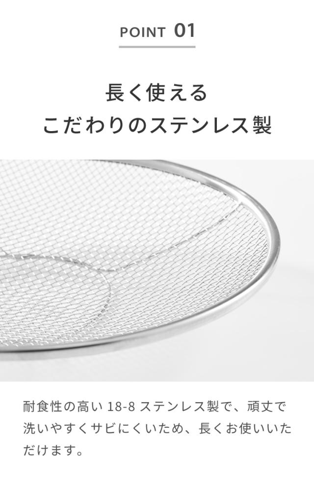 18-8ステンレス製で、頑丈で洗いやすくサビにくいため、長くお使いいただけます。