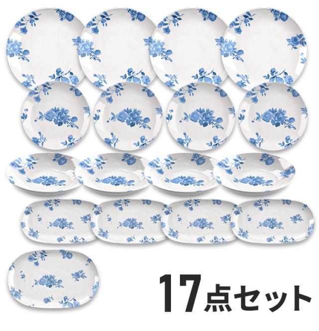 コテージブルーフローラル 17点セット メラミン食器 割れにくい おしゃれ 食洗機対応 ボウル お皿 深皿 可愛い 電子レンジ不可 食洗機対応 食器セット プレート(代引不可)【送料無料】