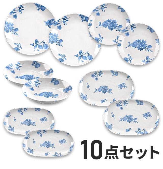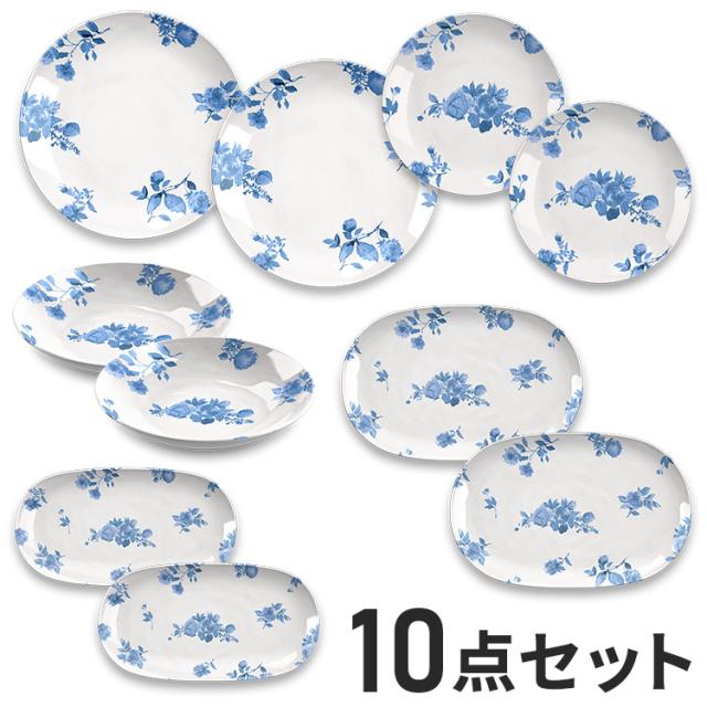 コテージブルーフローラル 10点セット メラミン食器 割れにくい おしゃれ 食洗機対応 ボウル お皿 深皿 可愛い 電子レンジ不可 食洗機対応 食器セット プレート(代引不可)【送料無料】