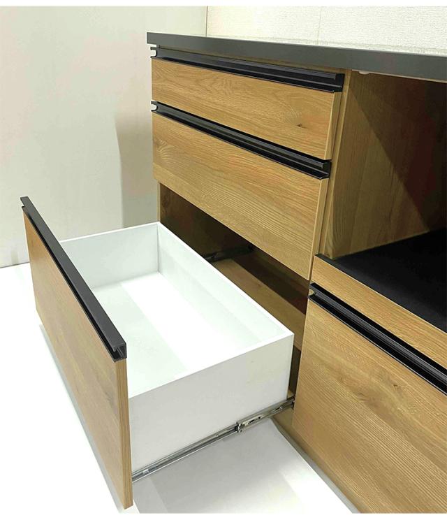 〇引出は奥の物も出し入れしやすいフルオープンタイプです(耐荷重15kg)。