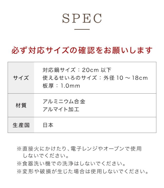 使えるせいろのサイズ:外径10〜18cm