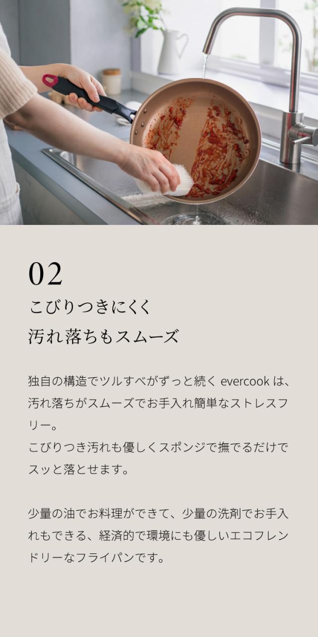 ツルすべで、こびりつきにくく、お手入れ簡単。 快適がずっと続く『evercook』のフライパン