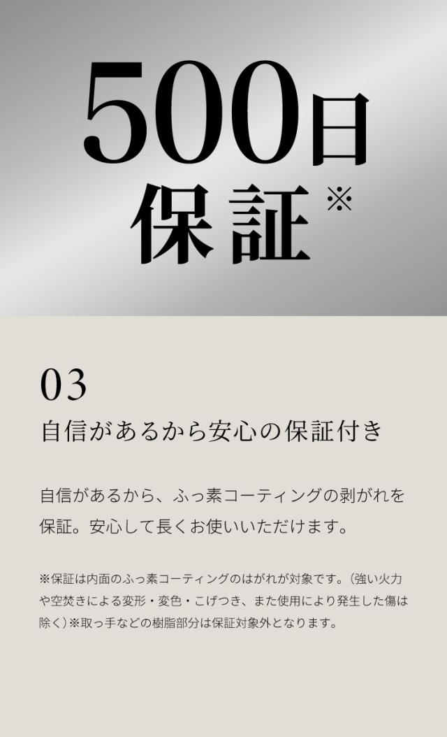 保証:500日(※保証は内面ふっ素樹脂のはがれが対象です)