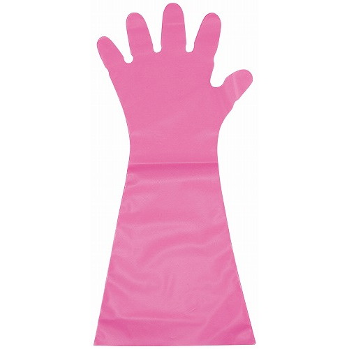 エンボス手袋 #50 ロング ピンク(五本絞り)50枚入 S 45μ(代引不可)【送料無料】