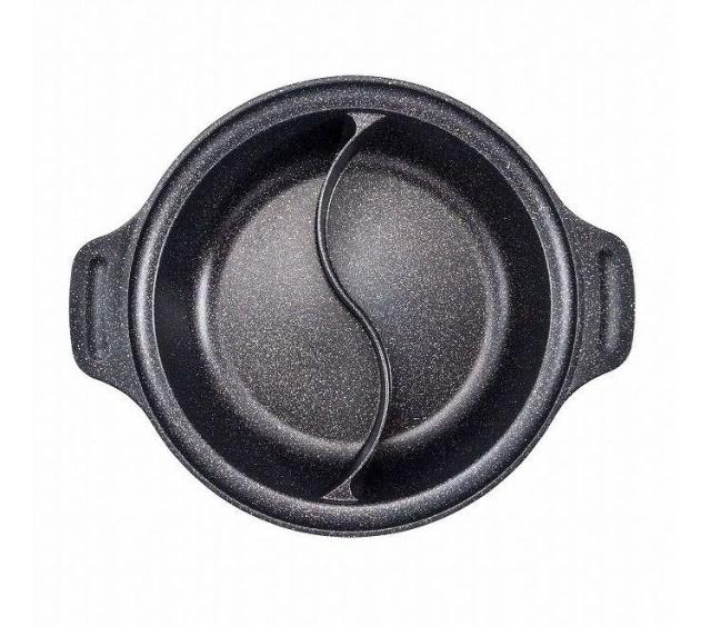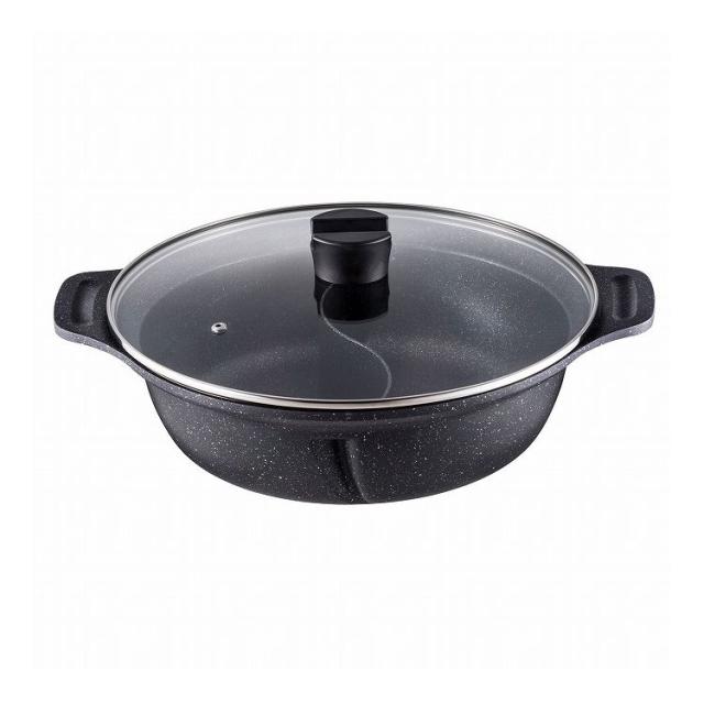二食鍋、仕切り、仕切り付き、仕切り鍋、IH、ガラス蓋、ガラス、ふた付き、オール熱源、ガス、鍋、黒、ブラック、おしゃれ、28cm、大きい、大、卓上、二人用、5L、こげつかない、お手入れ簡単、洗いやすい