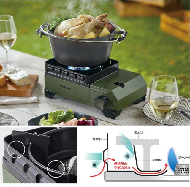 風のある場所で、空気は通しても風は通さない。独自の「ダブル風防ユニット」搭載で、野外でも強い加熱性能が得られます。