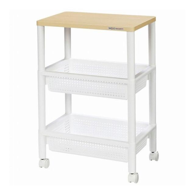 不動技研 ウッドテーブルワゴンWTW3S ホワイト (キッチン収納 サイドテーブル)(代引不可)【送料無料】