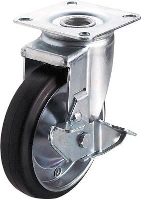 ユーエイ 産業用キャスターS付自在車 130径ゴム車輪【WJ2-130S】(キャスター・プレート式ゴム車)