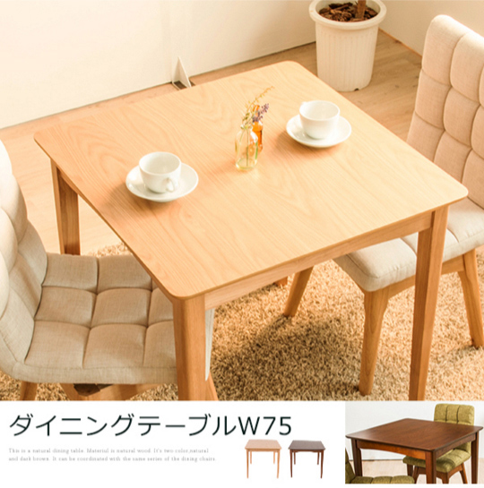 ダイニングテーブル 北欧 テーブル 木製 幅75cm 正方形 ダイニング 木目 ウォールナット 食卓用 ダイニングテーブル 【テーブル単品】 (代引不可)【送料無料】