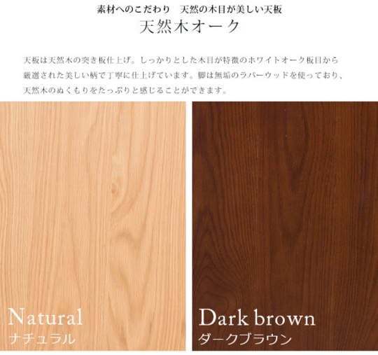 仕様 天然木化粧繊維板〔ウレタン塗装〕、脚部:天然木ラバーウッド〔ラッカー塗装〕