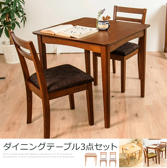 ダイニングテーブル 3点セット ダイニングセット 木製 北欧 幅75cm 正方形 ダイニングチェア2脚 木目 ウォールナット 食卓用(代引不可)【送料無料】
