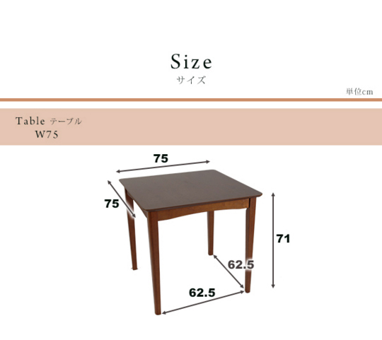 サイズ テーブル:幅75×奥行75×高さ71cm,チェア:幅41×奥行49×高さ78(座面高43)cm