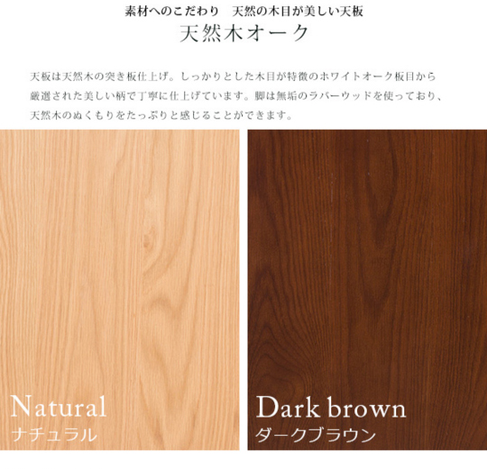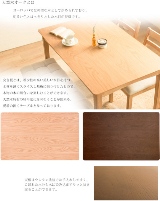 仕様 天然木化粧繊維板〔ウレタン塗装〕、脚部:天然木ラバーウッド〔ラッカー塗装〕