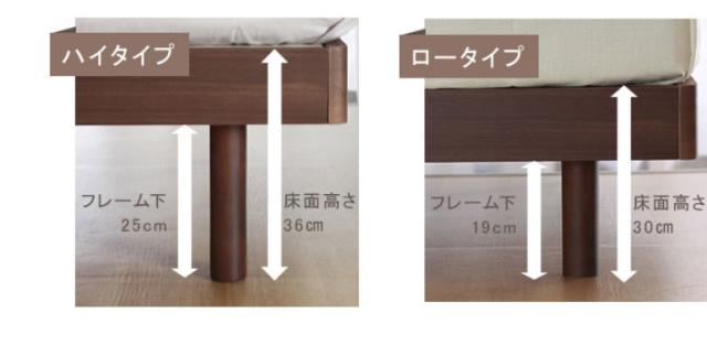 【サイズ】高さ78cm・長さ210cm・幅Sサイズ98.5cm:SDサイズ120.5cm:Dサイズ140.5cm・床面サイズ 高さハイタイプ36cm:ロータイプ30cm・ベッド下高さハイタイプ25cm:ロータイプ19cm。