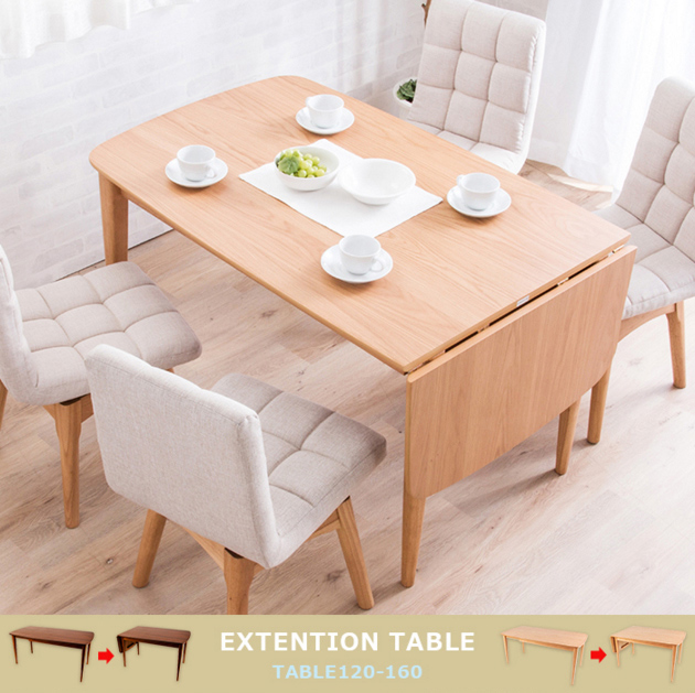 ダイニングテーブル 北欧 テーブル 木製 伸長式 伸縮 幅120-160cm ウォールナット ナチュラル バタフライテーブル 木目 食卓用 【テーブル単品】 (代引不可)【送料無料】