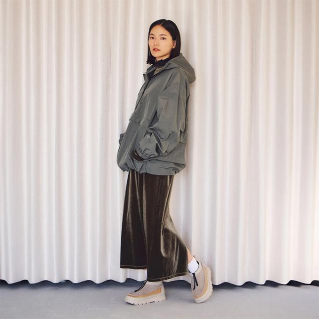 YKKアクアガード止水ファスナーや多様な素材をミックスし、テクニカルな雰囲気を持たせたデザインは、都会の洗練されたスタイルにマッチします。