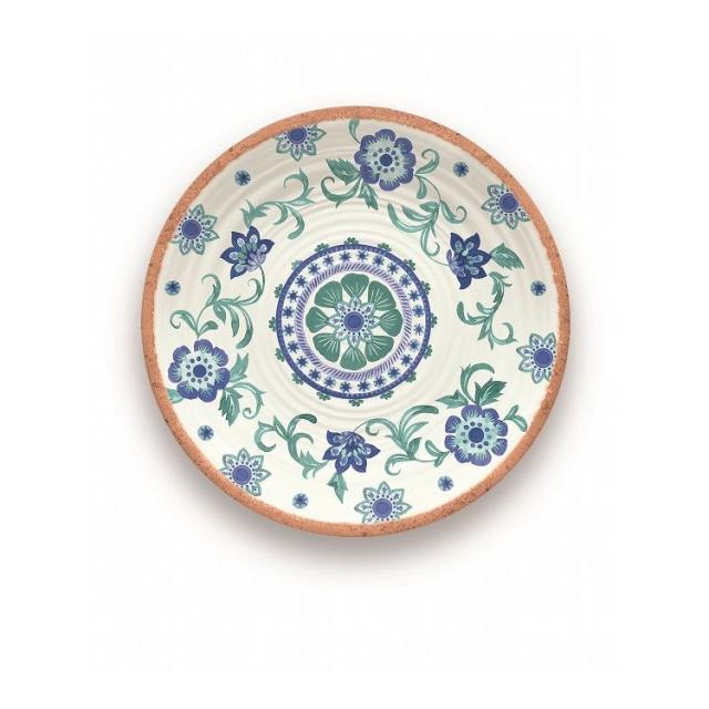 テラコッタ(素焼き)をモチーフ。手作りの風合いを模したブルーの花柄のメラミン食器です