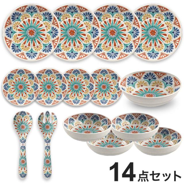デザートリオ 14点セット メラミン食器 割れにくい おしゃれ 食洗機対応 ボウル お皿 深皿 可愛い 電子レンジ不可 食洗機対応 食器セット プレート(代引不可)【送料無料】